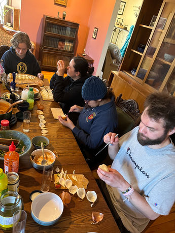 Throughout the seasons various friends and family, old and new, weave in and out of life at Windstone: spontaneous informal gatherings, planned events and conferences, work parties, summer internships, reading groups, music nights, bonfires, school groups, study blocks, snow days, art retreats, ski treks, bushwacking, cider-making, cookie-decorating, neighbourhood potlucks. None of these gatherings are completely distinct each from the other - it is thus that friends and families, old and new, are shared and intermingle, and enrich and effoliate (to use a Tolkienian term) each others’ lives.